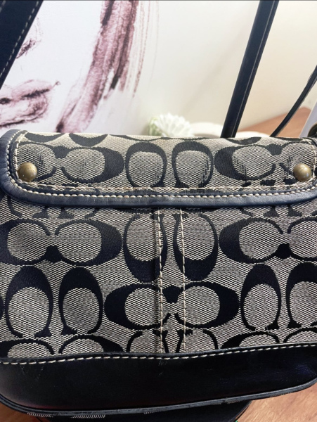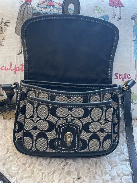 Coach Vintage Signature Turn Lock Shoulder Bag Black Canvas Leather Authentic