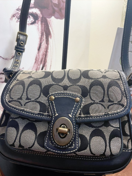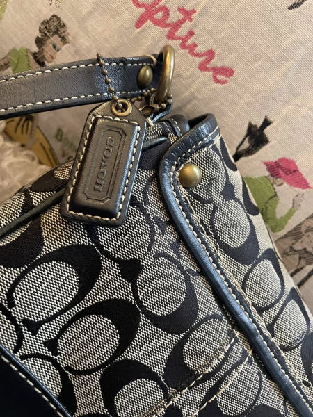 A timeless Y2K classic, this Coach Vintage Signature Turn-Lock Shoulder Bag blends everyday practicality with iconic styling. Crafted in the brand’s signature C jacquard canvas with leather trim, it features a structured flap and brass turn-lock closure that instantly gives that vintage Coach charm.